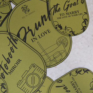 Les verres en papier blanc, les sachets pour les biscuits, ou meme des cartes. On a tout tamponné. Pour faire faire le tampo on a envoyé notre logo chez Bloomini Studio.